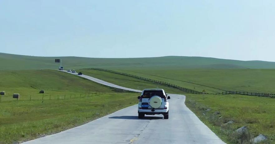 第二天,几人结伴乘坐越野车霸道穿越莫日格勒河,进入呼伦贝尔大草原,走近自由的牛羊群、英姿飒爽的马群;沿 45 度斜坡一路刺激冲向草原至高点, 以上帝视角俯瞰秘境美景。